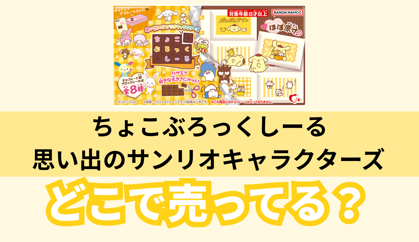 この記事では、『ちょこぶろっくしーる 思い出のサンリオキャラクターズ』の販売店(コンビニ・スーパーなど)や通販情報、購入できる可能性が高い店舗についてまとめました。