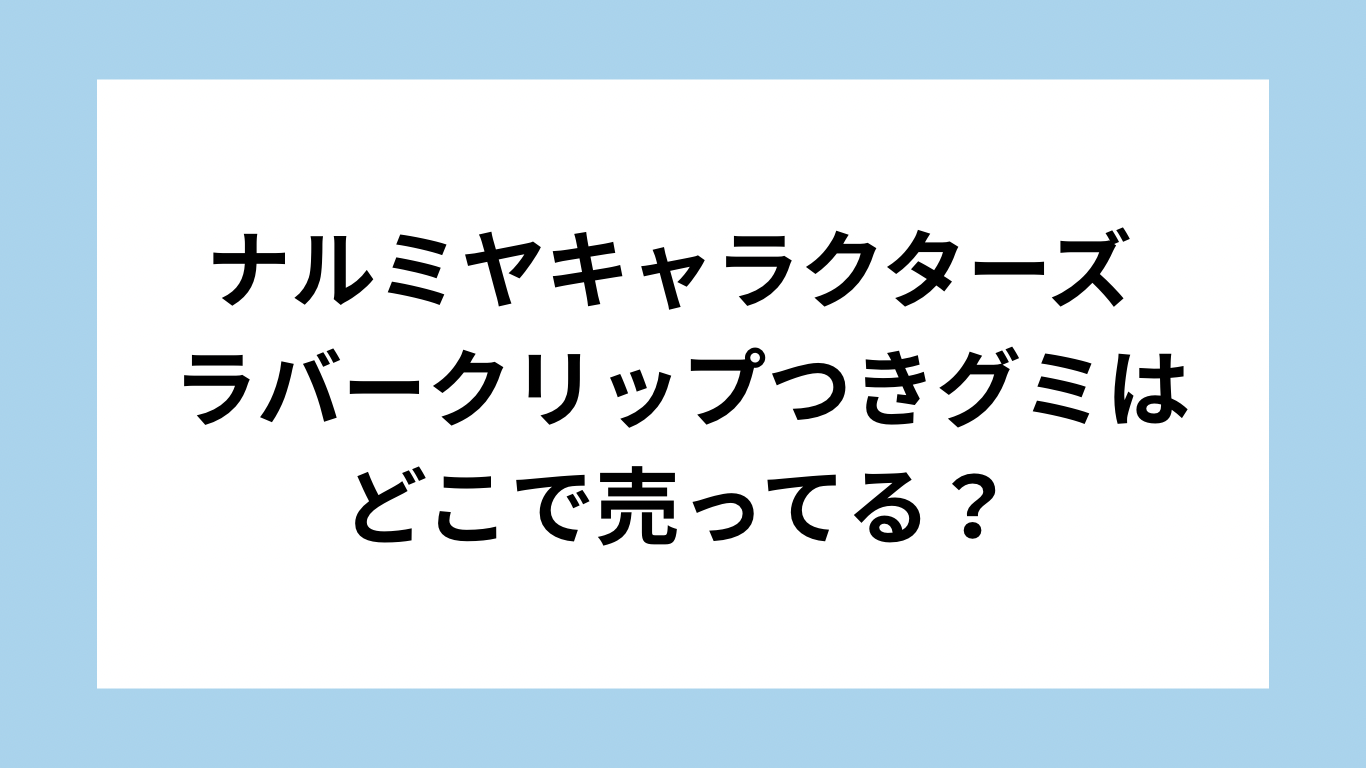 この記事では、『ナルミヤキャラクターズ ラバークリップつきグミ』がどこに売っているのかをまとめたので紹介していきます。