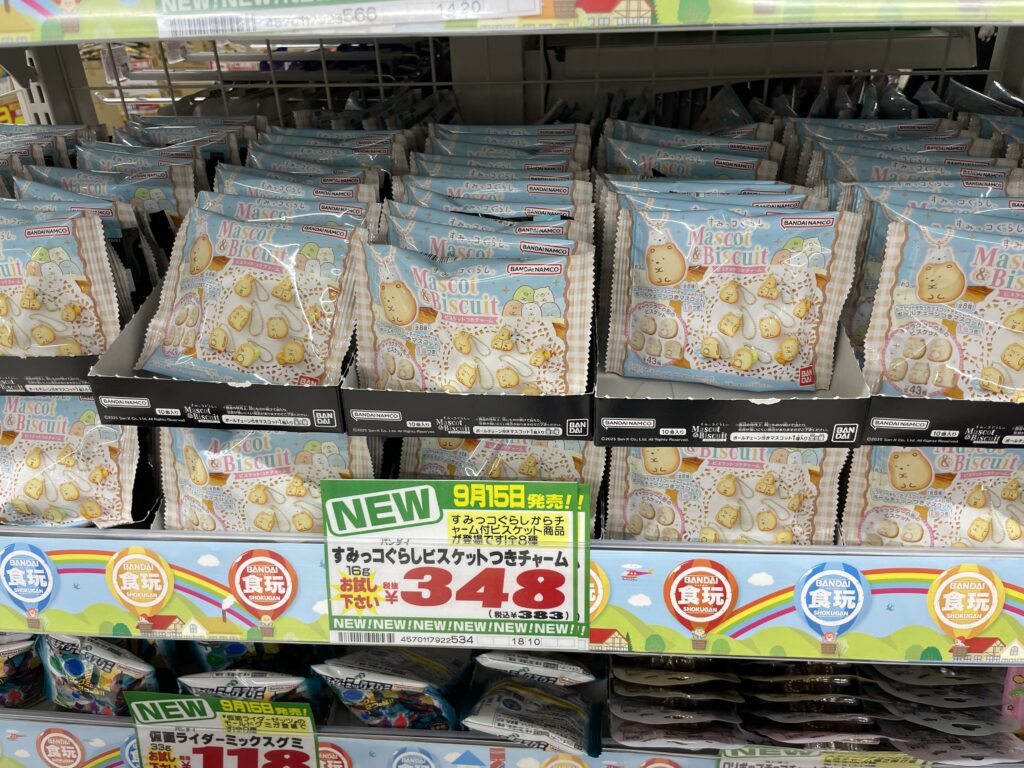 バンダイ公式サイトによると、『すみっコぐらし ビスケットつきチャーム』は全国の量販店のお菓子売り場で販売される予定です。
