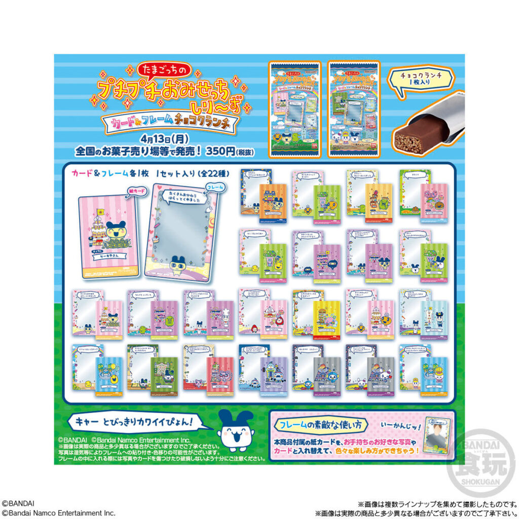 たまごっちの人気が再び盛り上がる中、新しい食玩 「たまごっちのプチプチおみせっちしり~ず カード&フレーム チョコクランチ」 が発売されました。